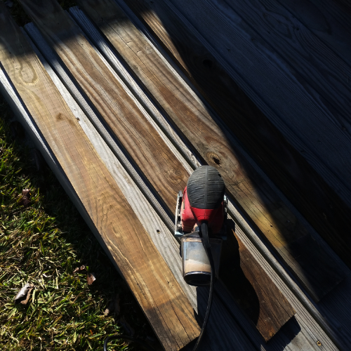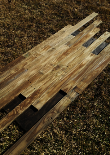 Then, we sanded each board to make them smooth and to get the dirt off. We were originally planning on staining the slats, but after sanding them they were naturally a beautiful color with interesting grains throughout.