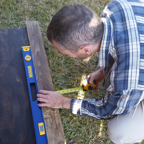 Measured and made sure the slats were level, as well as overhanging the plywood an inch or so.