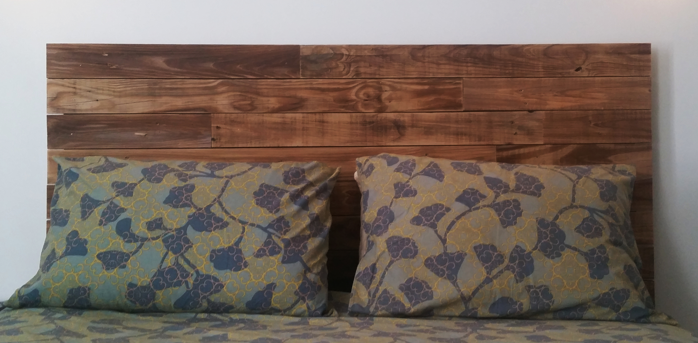 When we moved in, we hit it off with our neighbors right away. It was such a blessing, and then they told us they were moving. Major bummer. In their process of moving, they told us that there was a bunch of wood in the backyard that they needed to get rid of if we wanted to use it for fire wood in our backyard pit. Turns out, it was a bunch of 4 foot fence slats. Forget the firewood! These are perfect for DIY projects. We made a coat hook for our foyer, and wall decor to hang pictures on, but my favorite was the headboard. I’m in love with this thing!