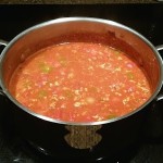 So I took his advice. Here is my version of my mom’s chili. It may be a bit different than what you are used to. When we first got married, my husband didn’t know what to say about it. He liked it, but said it was more like soup. I’ve backed off some with the tomato juice over the years to make it not so soupy. Enjoy! (And don’t forget to check out the cost breakdown at the end.)