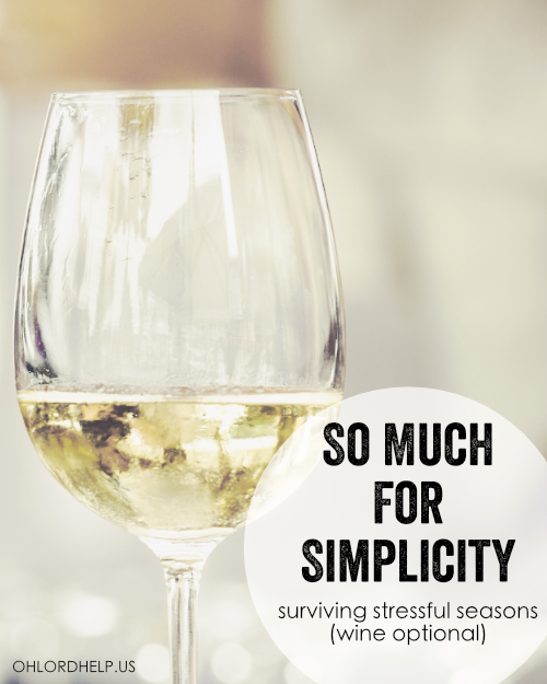 I love the idea of living with simplicity, but sometimes that is just not realistic. Sometimes we are required to get uncomfortable and a tad bit frazzled. Thankfully, and hopefully, this is a season of life that is short-term. One day I will look back and hardly remember the franticness that is currently consuming me. One day…